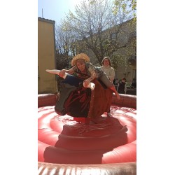 Qui sera le plus courageux à monter sur ce taureau un peu capricieux ? C'est tout un art. Ce taureau vous fera danser dans tous les sens ! Maintenez vous bien à la corde, serrez les jambes... et restez le plus longtemps possible sur le taureau qui se déchaine pour vous expulser de son dos.