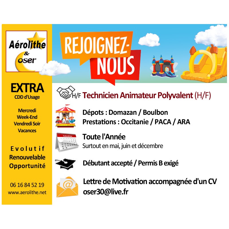 Animateur Technicien d'Attraction Polyvalent H/F pour des missions ponctuelles en animation évènementielle.